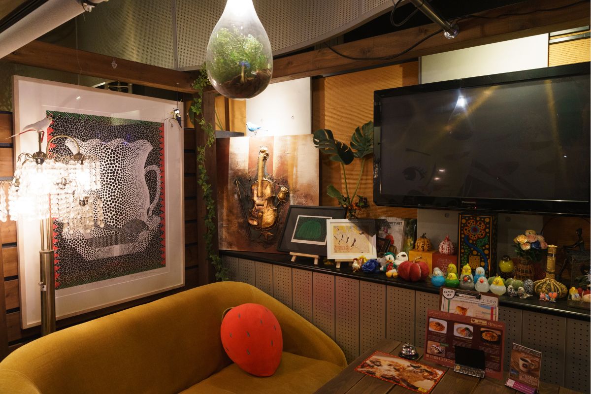 作品と過ごす時間を楽しみに来店されるお客様がいる。その光景は、アートがこのお店の雰囲気や佇まいを自然に形づくっていることを教えてくれます。